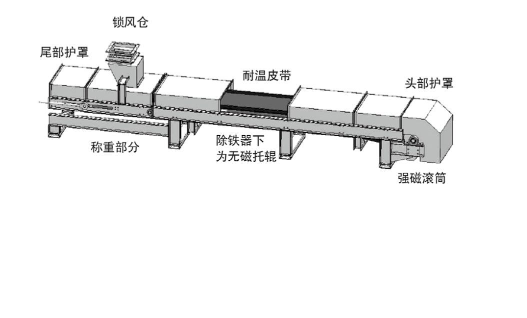 機(jī)械部分由鎖風(fēng)倉(cāng)(兼布料功能)、稱(chēng)重部分、輸送部分、防塵密封罩、加強(qiáng)除鐵(可選件)等組成,結(jié)構(gòu)嚴(yán)謹(jǐn),制作精良。