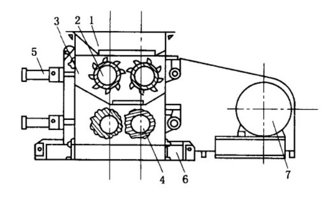 輥式破碎機結(jié)構(gòu)簡單、工作可靠、成本低廉,具有排料力度大小可調(diào)等有限。本機廣泛用于電力、水泥、建材、冶金等工業(yè)部門,破碎各種中等硬度的物料,如:煤塊、爐渣、焦炭、石灰石、煤矸石等。